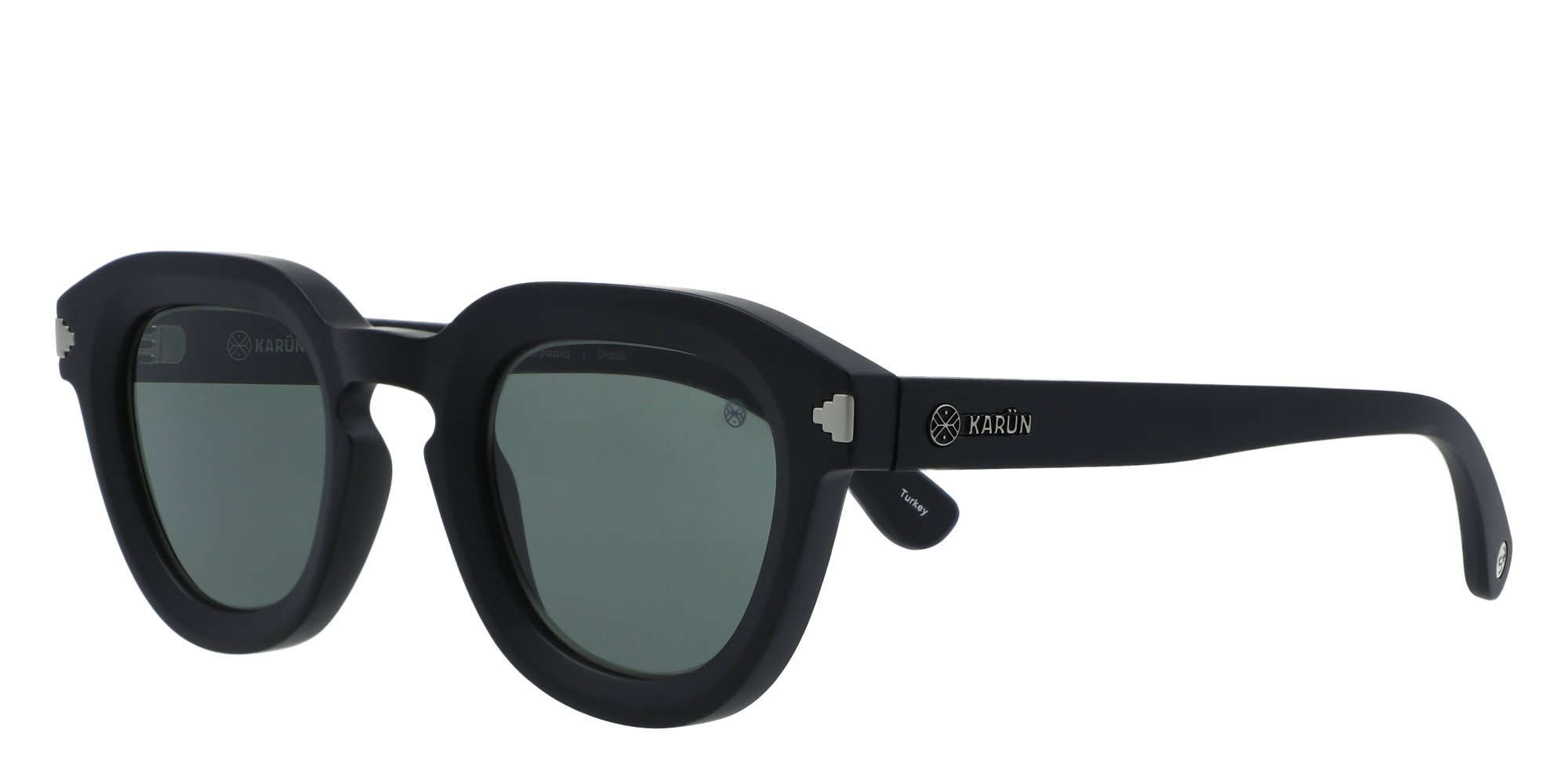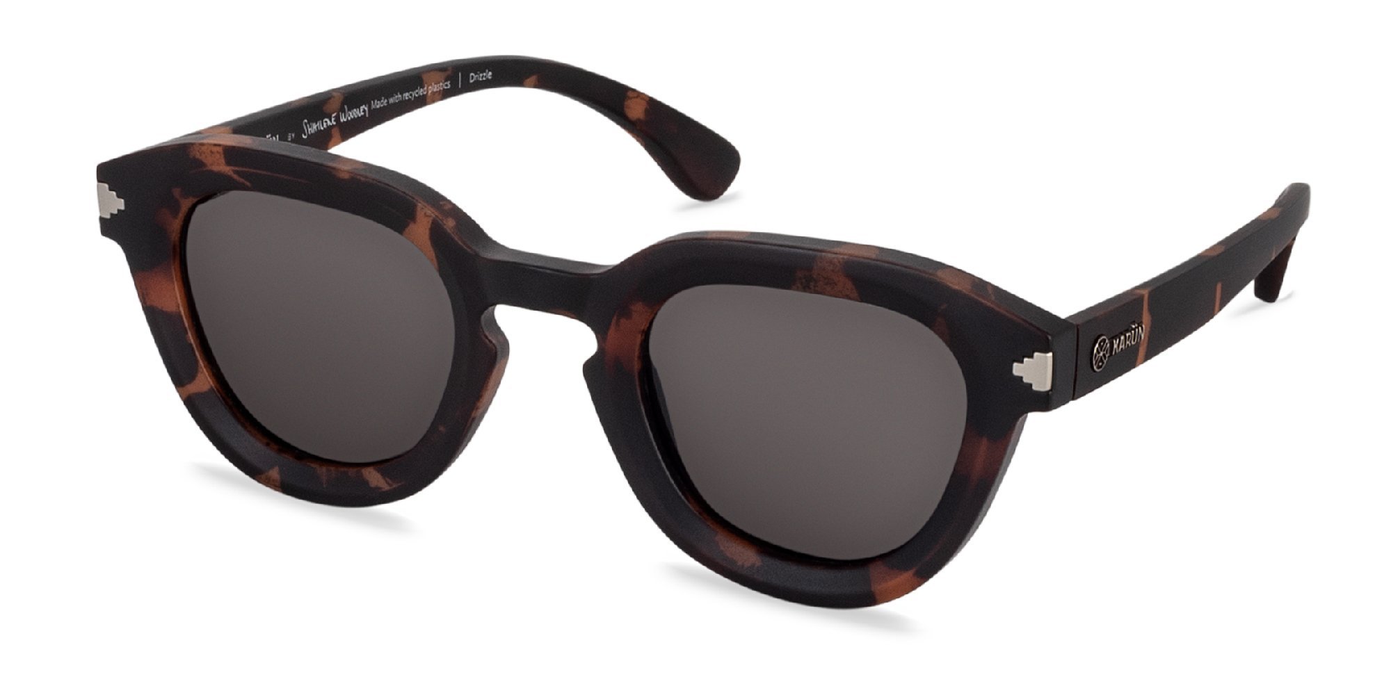 Karün remakes retro leaning fashion for a chic look in the Drizzle sunglasses. The frames are crafted in lightweight, durable recycled polycarbonate thats sturdy enough for an active lifestyle. A keyhole bridge distributes the weight of the frames evenly across the face to reduce pressure for a comfortable feel. The temples curve inward for stability behind the ears, with rivet detailing at the endpoints for classic appeal. Developed by Karün in association with Shailene Woodley, these frames provide a real sustainable fashion statement.
