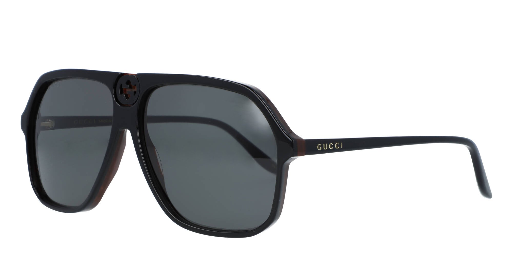 Treat yourself to luxury sunglasses in a timeless design when you reach for the GG0734S from Gucci. These modern aviator-style frames are constructed in lightweight acetate, a plant-based plastic eyewear designers prefer for its strength and durability. The temples widen at the tips for grip behind the ears, for a secure fit on active days. The Gucci name near the brow end of the temple represent this widely known designer brand. Make your mark on fashion wearing these GG0734S sunglasses by Gucci.