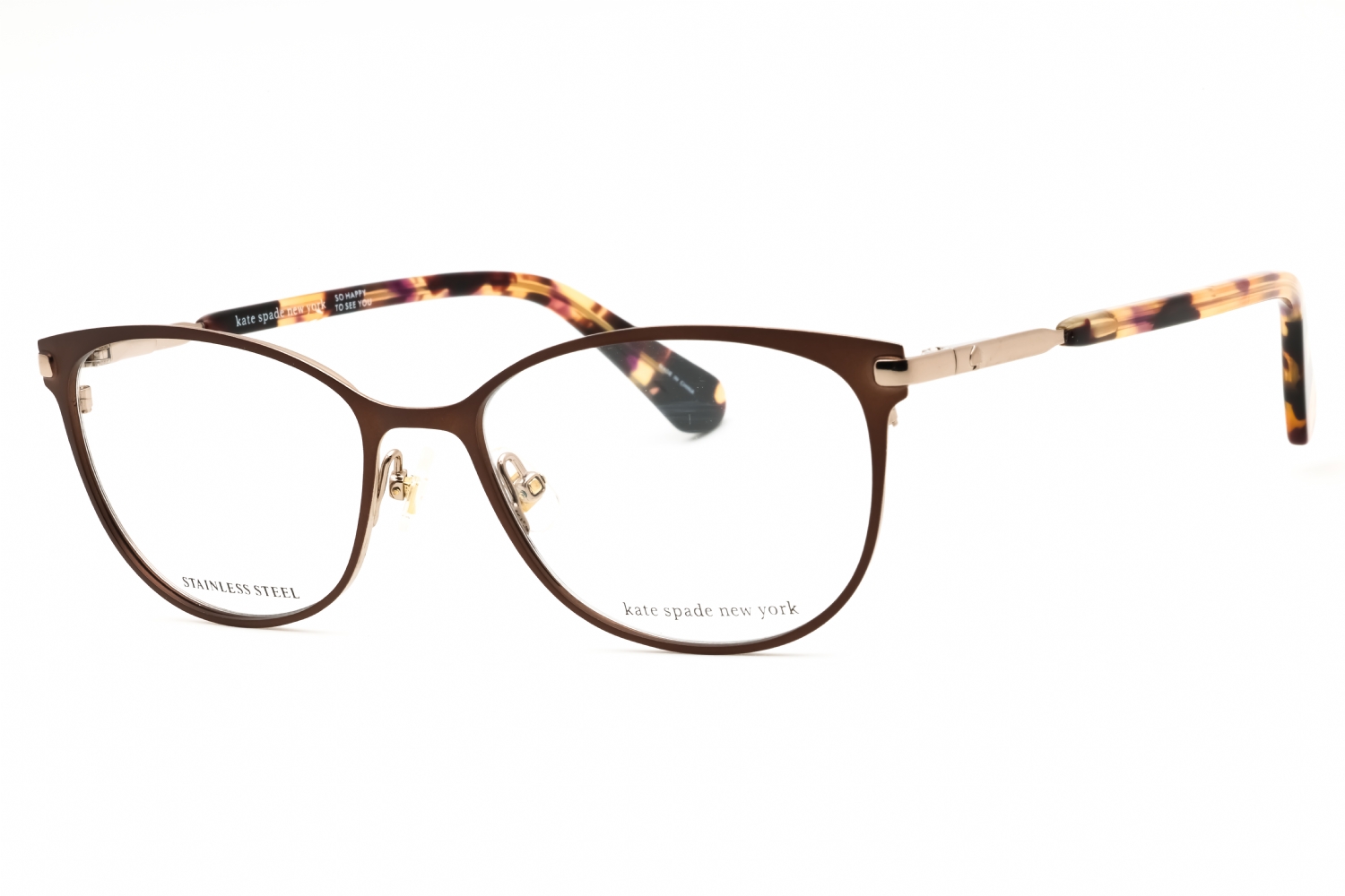 The Jabria eyeglasses from Kate Spade are a modern interpretation of a classic, sophisticated style. The slim, full rim frames are made from a combination of lustrous plastic and lightweight metal that holds its shape beautifully. Flexible spring hinges keep their initial adjustment for comfort. Sleek temples are wider at the tips for a secure fit, and feature the signature Spade logo. If your personal style combines professional looks with a contemporary flair, the Jabria from Kate Spade is for you.