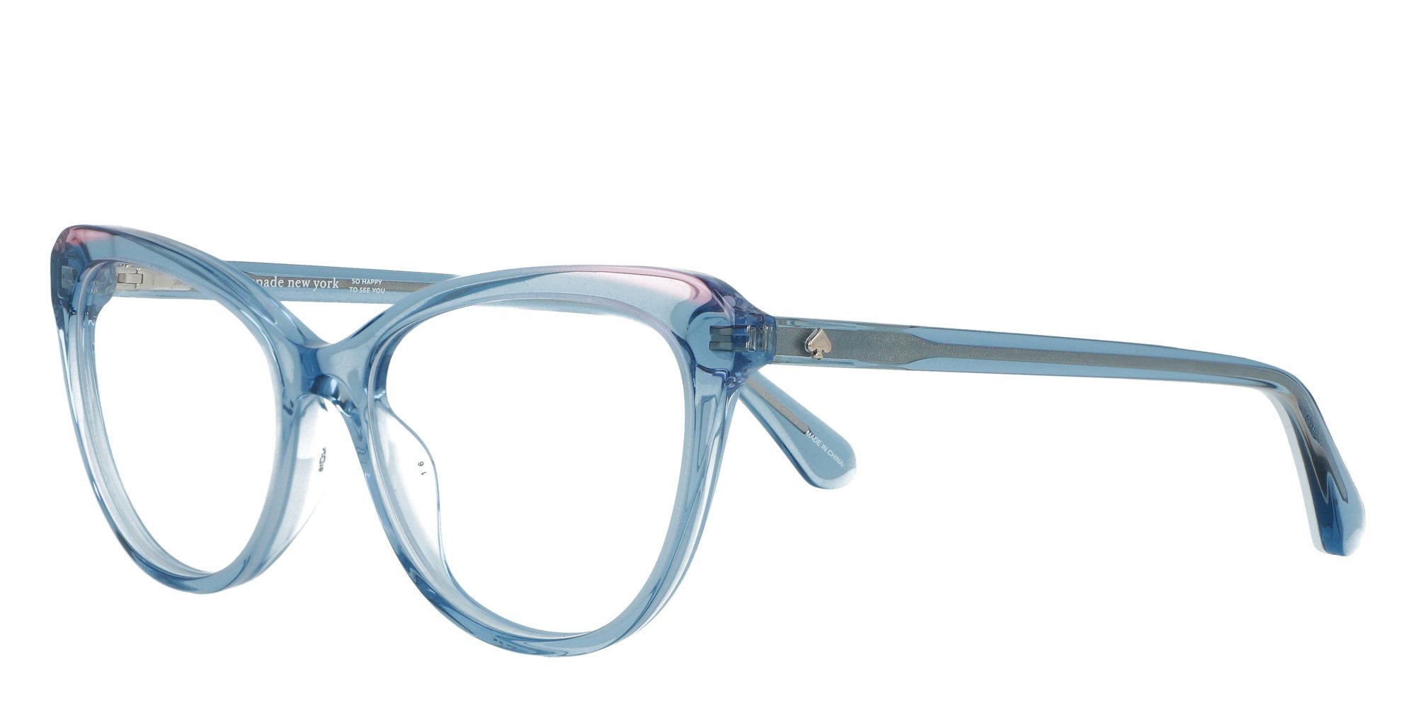 The Kate Spade CHANTELLE eyeglasses are the perfect stylish accessory that will take you from everyday looks to special occasion ensembles. The acetate frame comes in a shape thats designed to accent the femininity of all women, while simultaneously ensuring absolute comfort. The shiny metal Spade logo near the hinge is sure to enchant, as is the SO HAPPY TO SEE YOU inscription concealed on the inside of the temple.