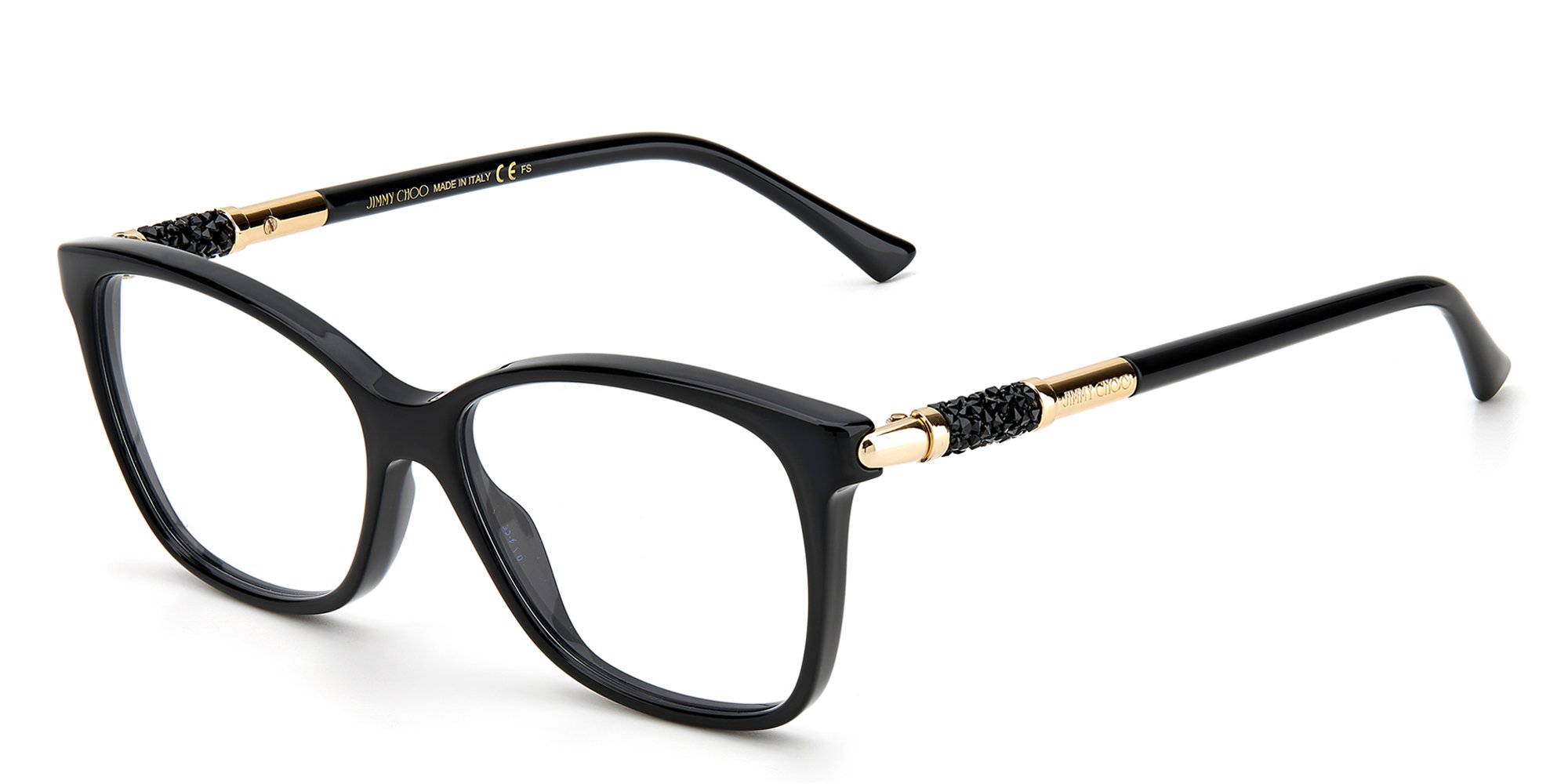 Sparkling crystals are injected in Jimmy Choo's signature Crystal & Glitter eyewear collection for a glamorous look. Original tubular crystal rock details enhance the temples in the Brand's trademark blend of innovative craftsmanship and luxurious style.