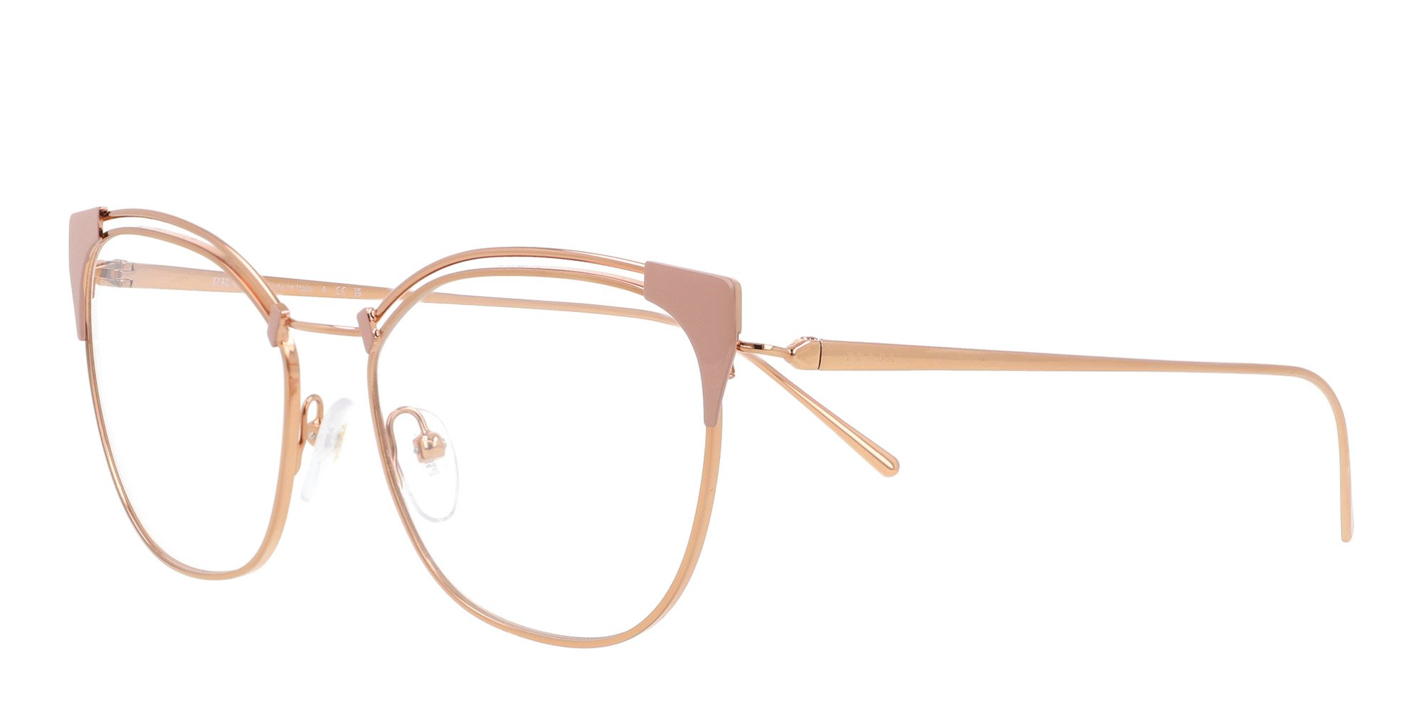 The PR 62UV eyeglasses from Prada exemplify high fashion design, with clean lines and nod to the classic cat eye shape. These chic full rim frames are made of a corrosion resistant metal that retains its shape yet adjusts easily. Subtly displayed on the temple, the Prada logo adds a touch of elegance. Showcase your sophisticated taste when you step out wearing these contemporary glasses by Prada.
