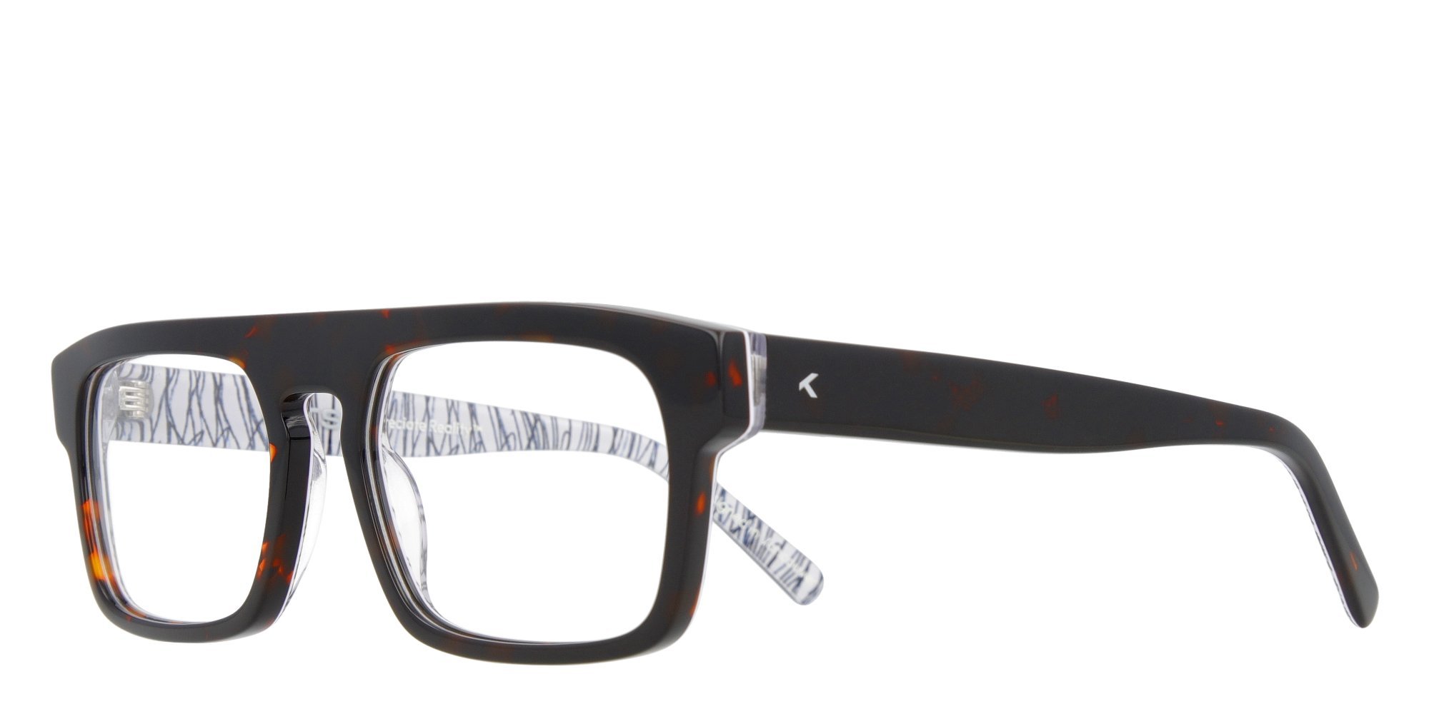 - Made from custom layered acetate with denim blue and white inside prints