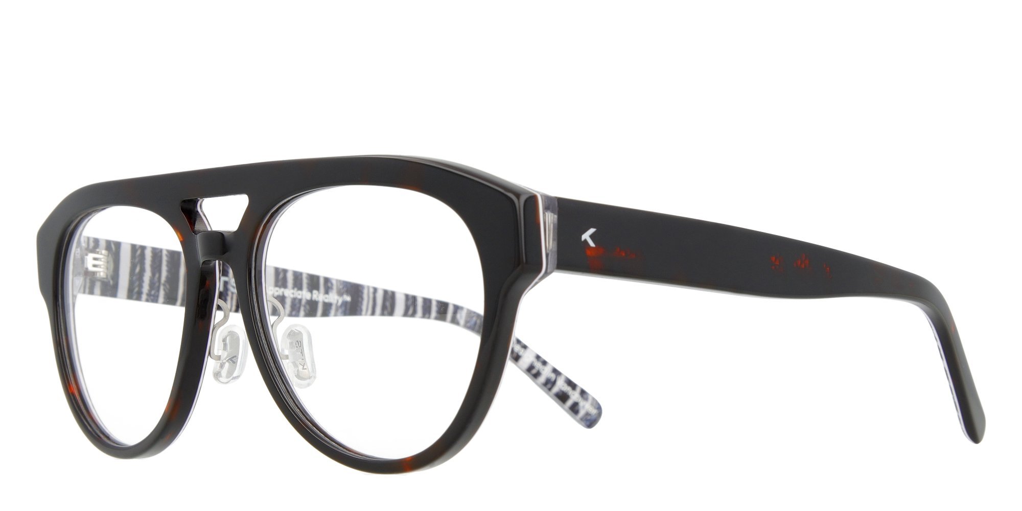 Multi-colour layered aviator acetate frame with nose pads.