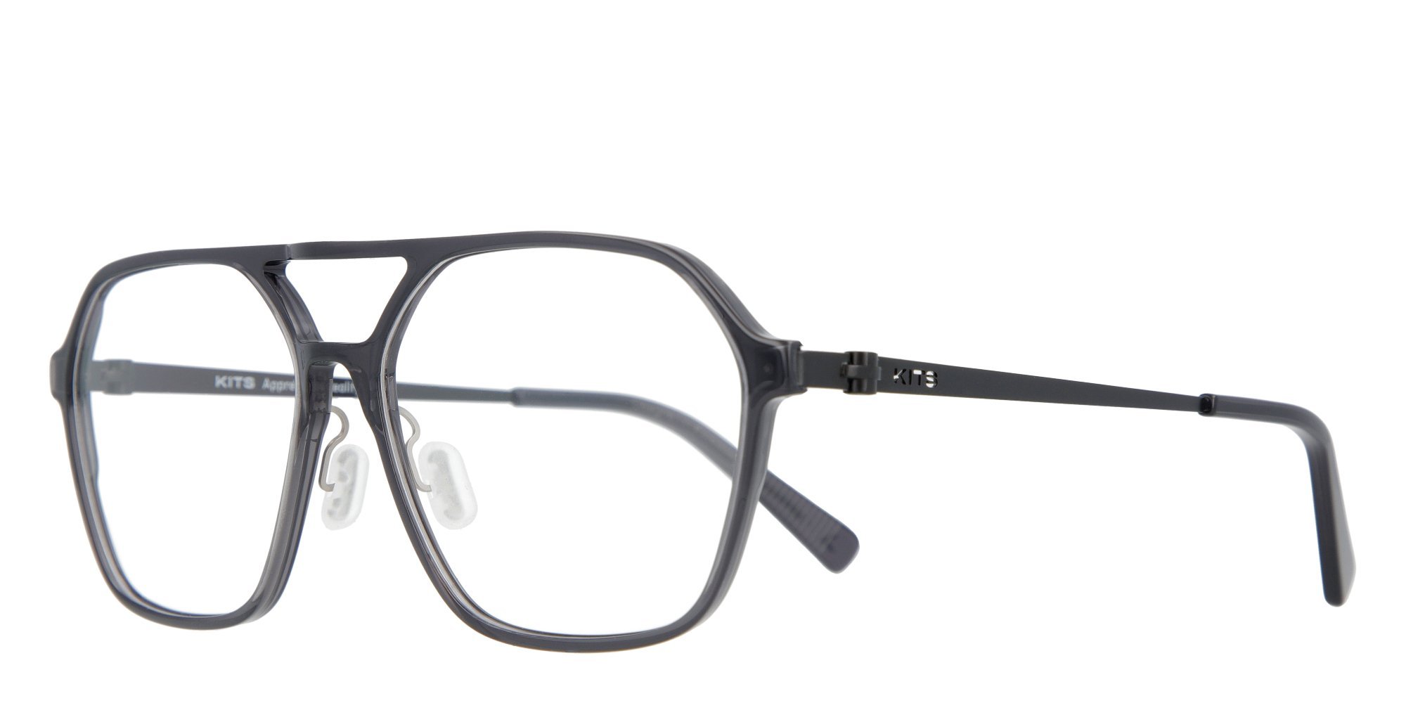 Ultra-lightweight hybrid frame featuring KITS custom nose pads.