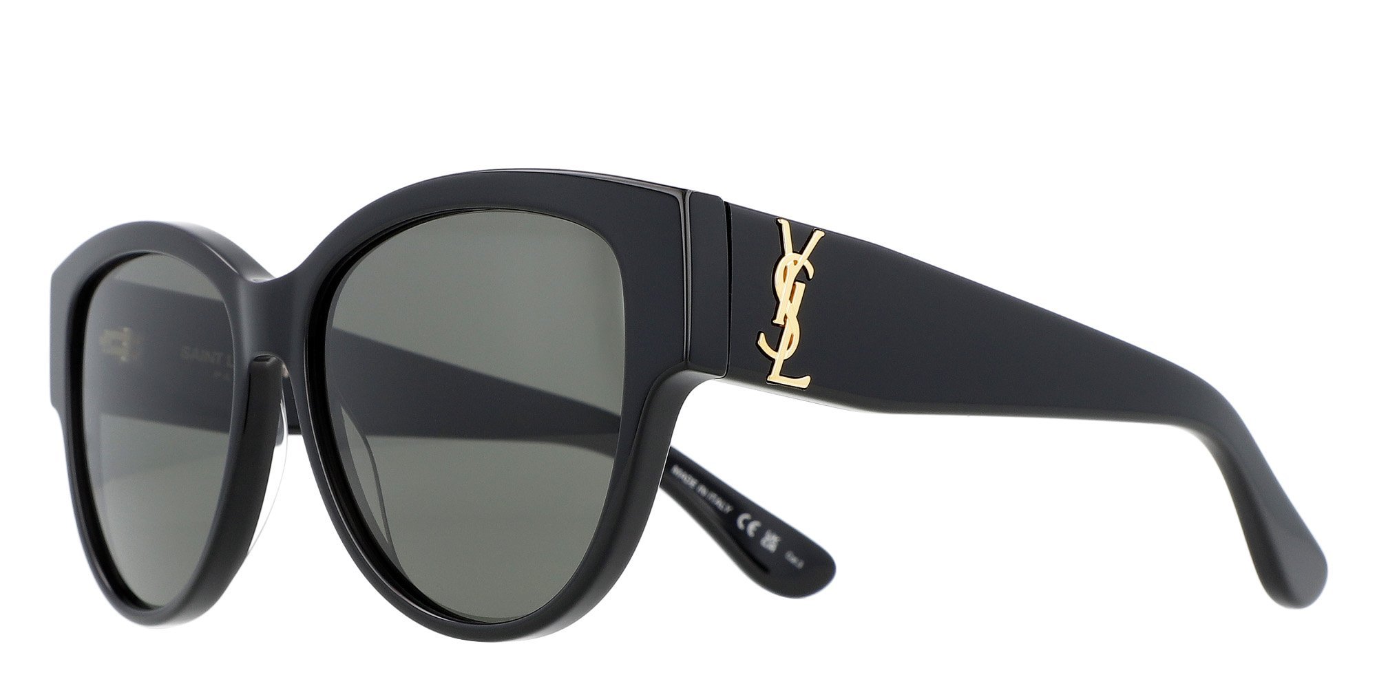 The Saint Laurent SL M3 sunglasses feature a chic round design with a full-rim acetate frame, perfect for adding a retro flair to your look. These sunglasses offer complete UV protection and are designed for both comfort and style. The subtle Saint Laurent logo on the arms adds a touch of elegance to this fashionable accessory.