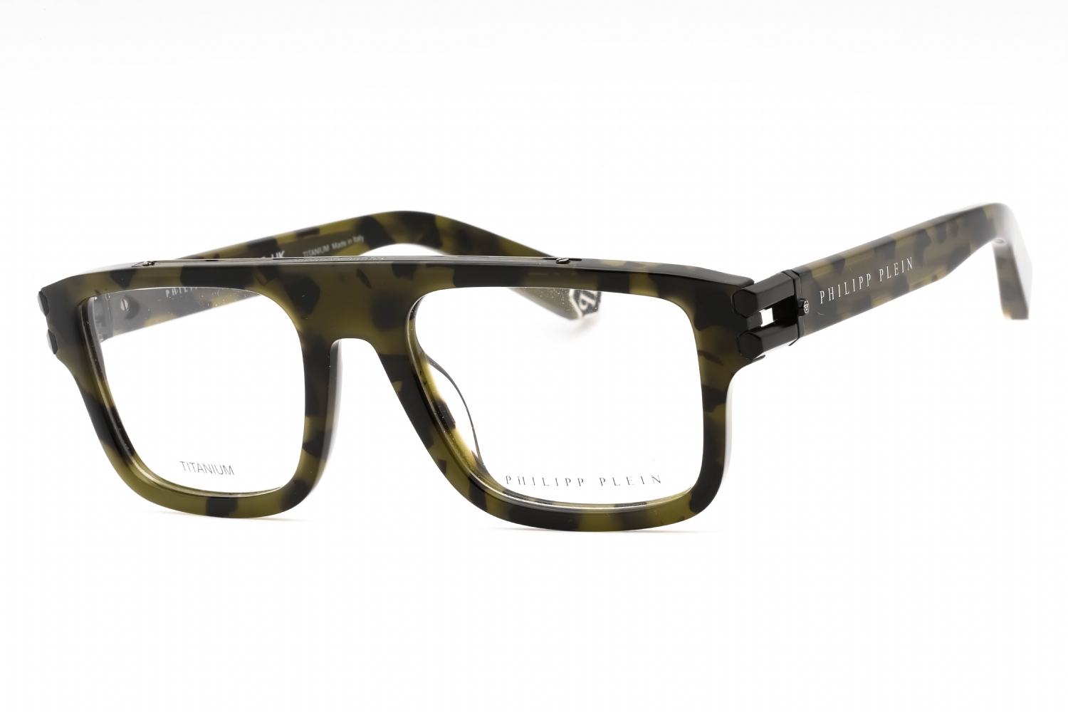 Philipp Plein VPP021M in Shiny Green Havana. This model features an eye catching shape to complement your facial features.The frame is made from quality materials, balancing weight and strength for your ultimate comfort.