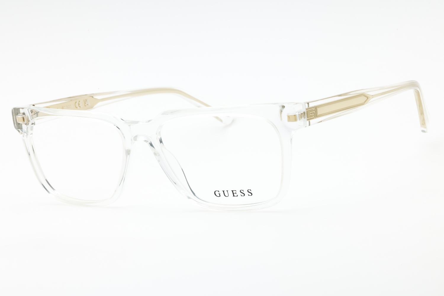 Guess GU50059 in Crystal. This model features an eye catching shape to complement your facial features.The frame is made from quality materials, balancing weight and strength for your ultimate comfort.