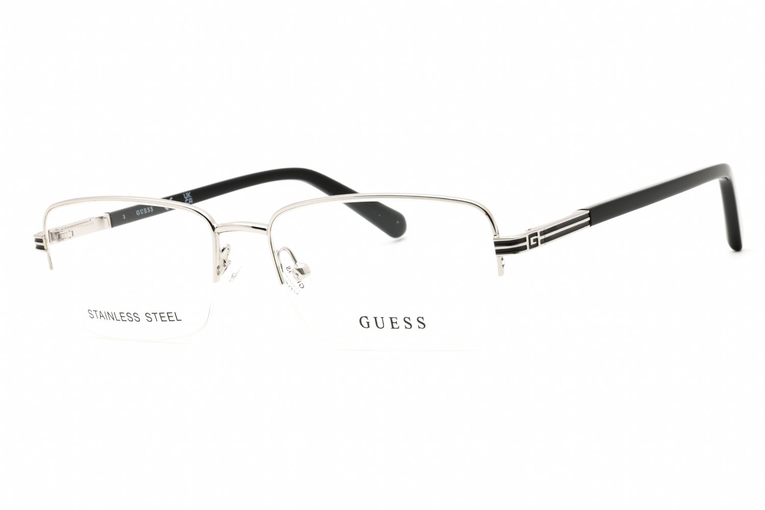 Guess GU50044 in Shiny Light Nickeltin. This model features an eye catching shape to complement your facial features.The frame is made from quality materials, balancing weight and strength for your ultimate comfort.