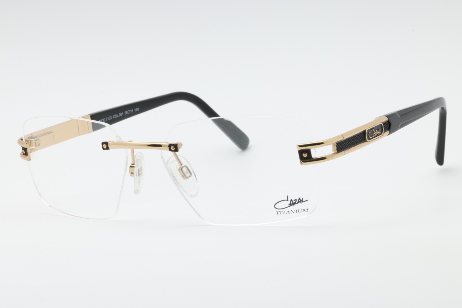 Cazal 7103 in Black-Gold. This model features an eye catching shape to complement your facial features.The frame is made from quality materials, balancing weight and strength for your ultimate comfort.