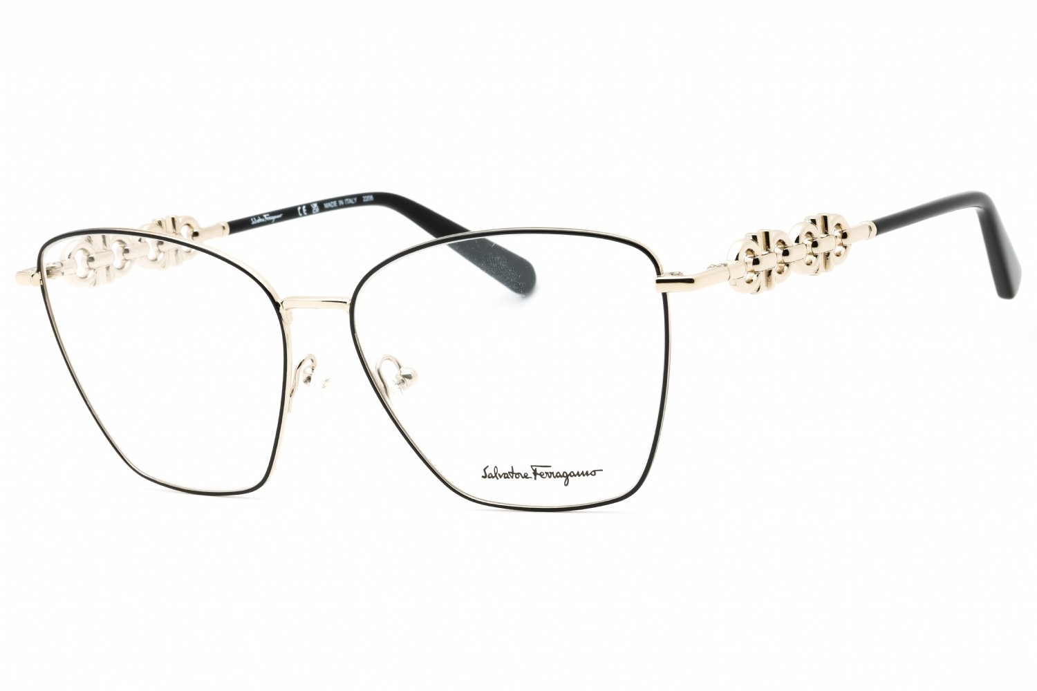 Salvatore Ferragamo SF2217 in Gold/Black. This model features an eye catching shape to complement your facial features.The frame is made from quality materials, balancing weight and strength for your ultimate comfort.