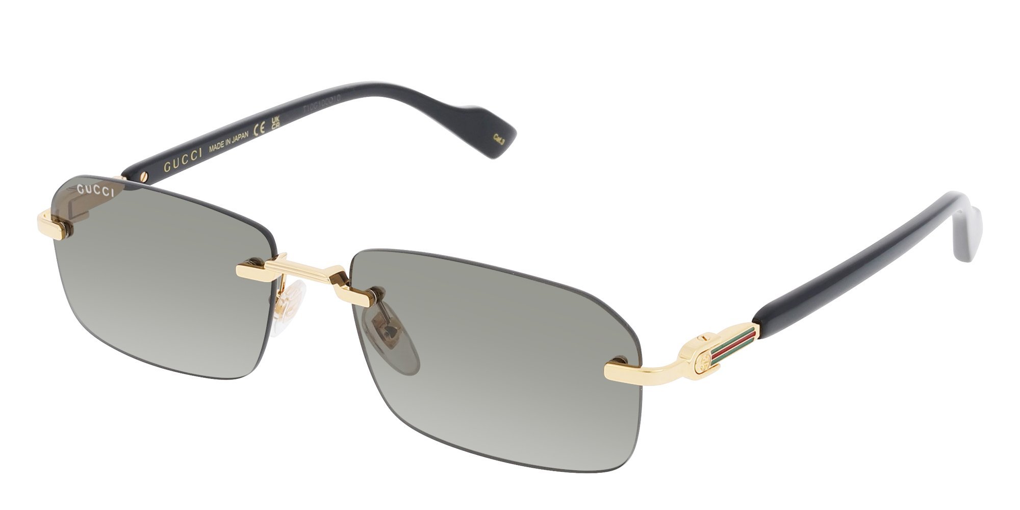 A bold rimless style, the Gucci GG1221S sunglasses feature a rectangular lens shape paired with metal temples and bridge. Designed for men, this model combines lightweight comfort with futuristic flair. The floating lenses and minimal frame deliver an ultra-modern aesthetic that stands out effortlessly