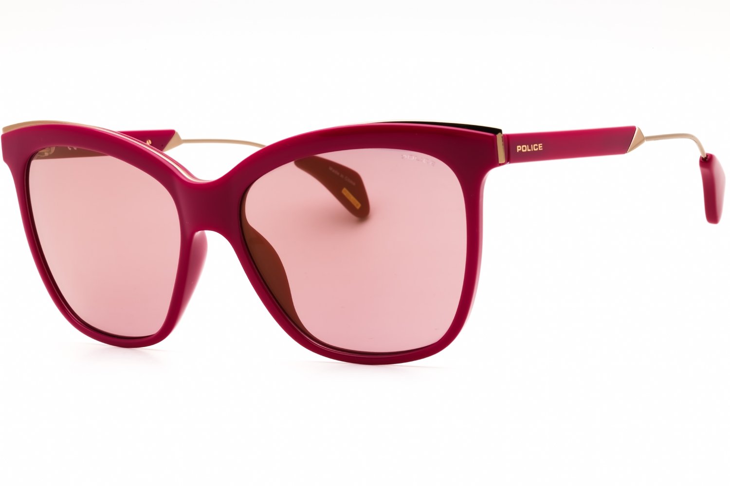 Police SPL621 in Cyclamen. This model features an eye catching shape to complement your facial features.The frame is made from quality materials, balancing weight and strength for your ultimate comfort.