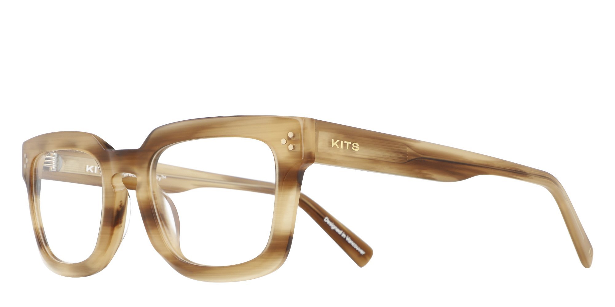 - KITS signature K mark on right and left temple tips