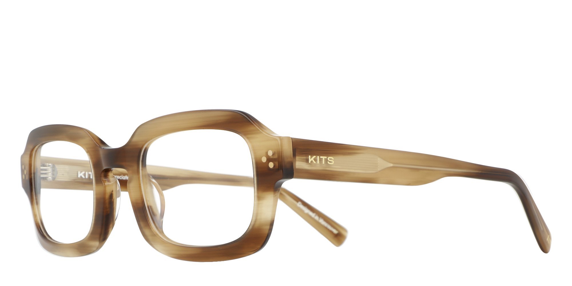 - KITS signature K mark on right and left temple tips