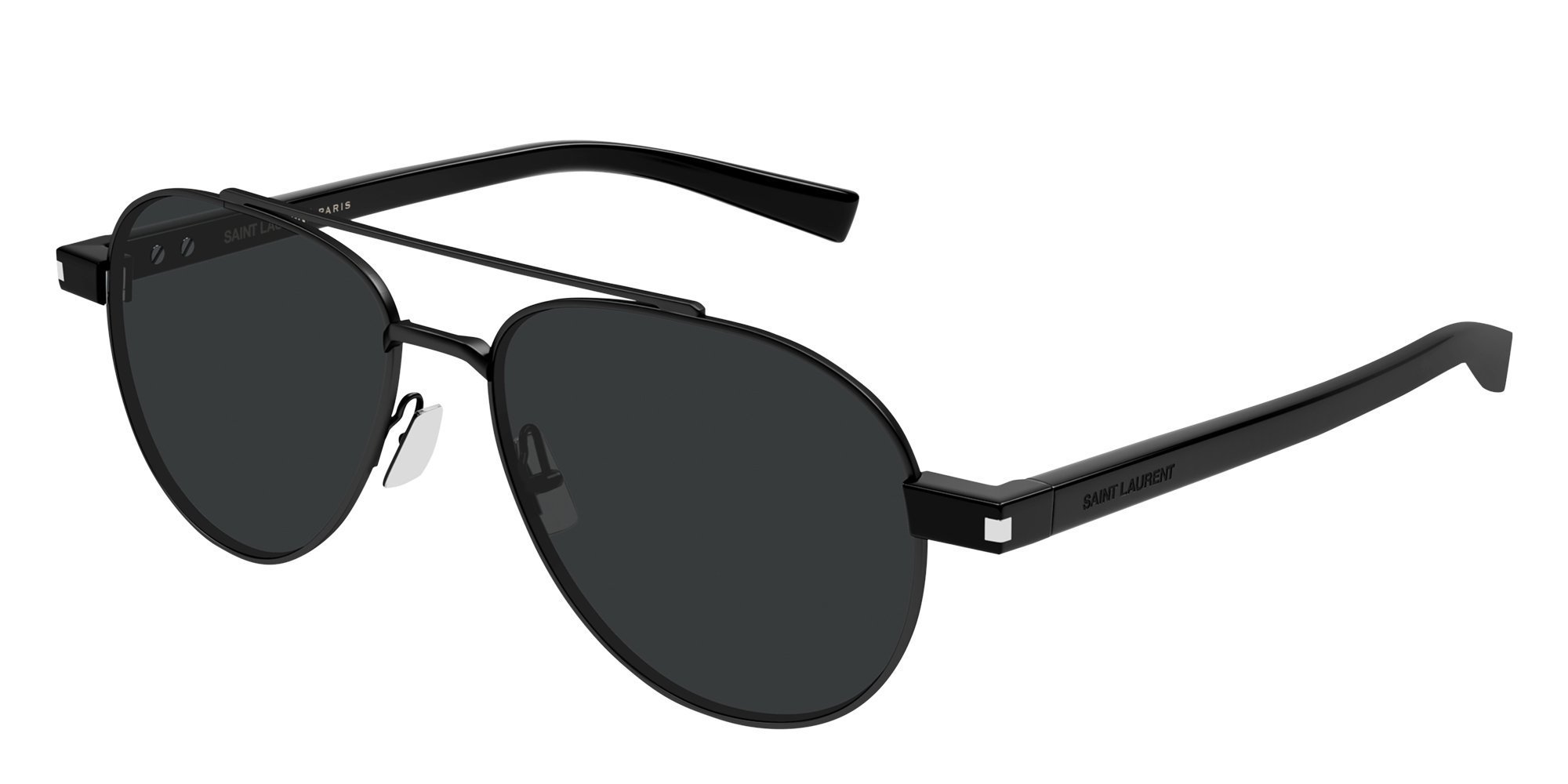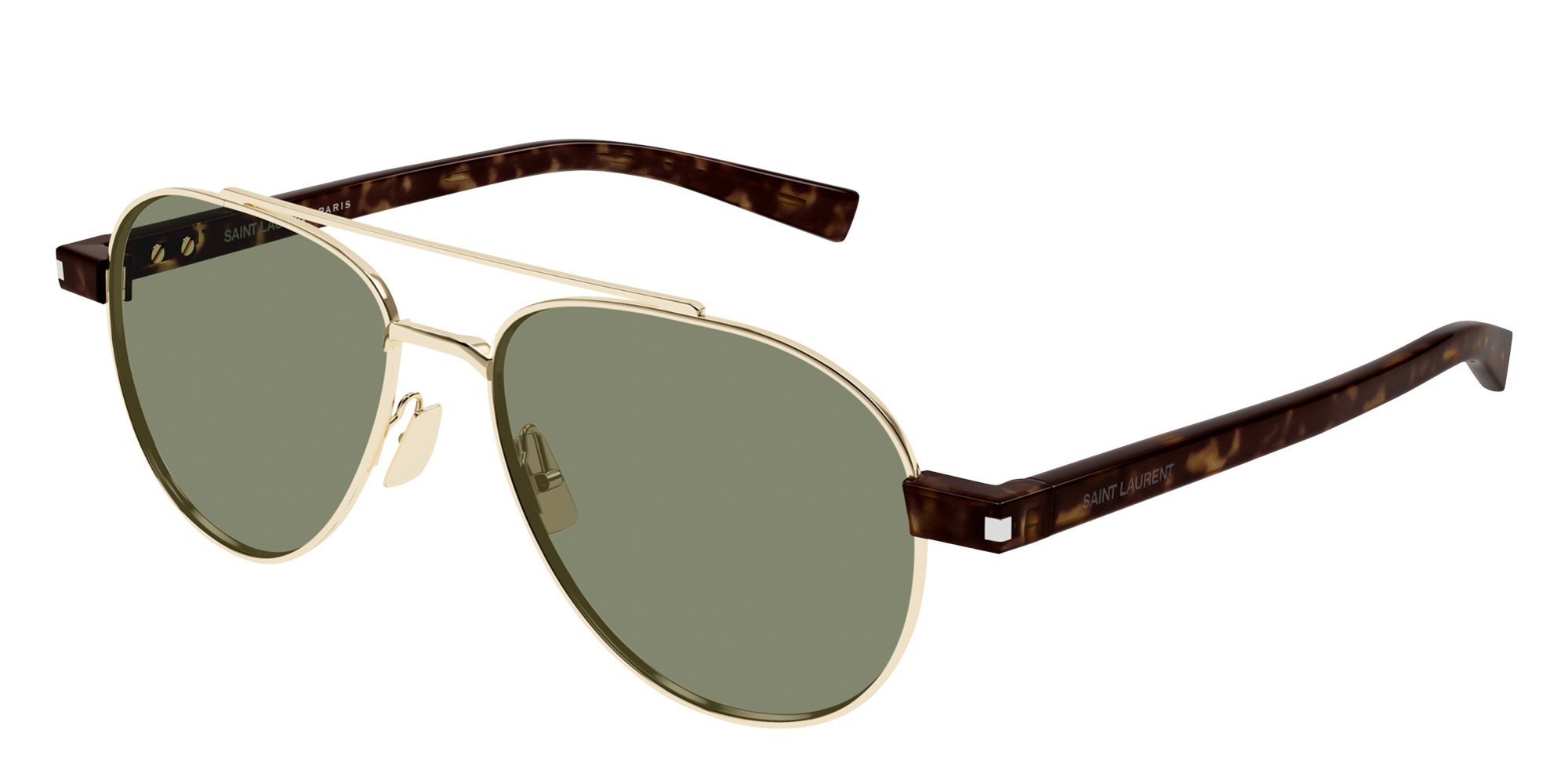 A modern interpretation of the aviator, the Saint Laurent SL 843 sunglasses combine sleek metal with dependable UV protection. Comfortable construction makes them suitable for extended wear outdoors. Their refined design delivers a confident finishing touch to any look.