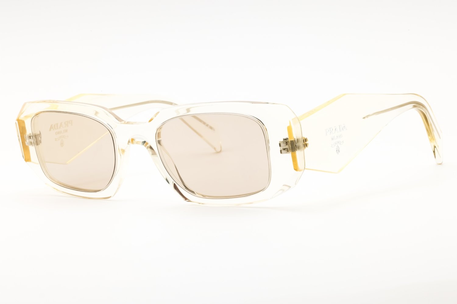 Prada 0PR 17WS in Transparent Peach. This model features an eye catching shape to complement your facial features.The frame is made from quality materials, balancing weight and strength for your ultimate comfort.