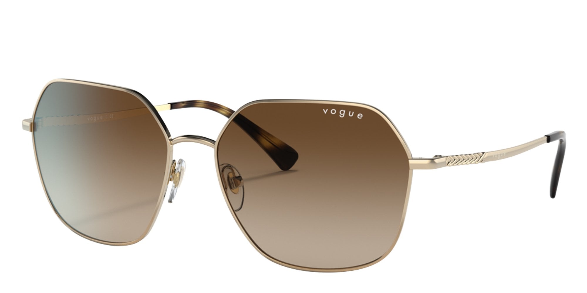 In the Vogue VO4198S sunglasses, modern geometry meets understated luxury with a metal frame crafted to elevate both form and function. The design features fine braid detailing along the temples for an artisanal touch, while the 58 mm lens width and full-coverage geometry offer bold yet refined presence. Built for women seeking statement eyewear without compromise, these sunglasses combine 100 % UV protection with a polished aesthetic.