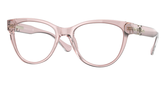 Versace VE3304 in Transparent Pink. This model features an eye catching shape to complement your facial features.The frame is made from quality materials, balancing weight and strength for your ultimate comfort.