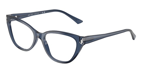 Jimmy Choo JC3011 in Transparent Navy. This model features an eye catching shape to complement your facial features.The frame is made from quality materials, balancing weight and strength for your ultimate comfort.