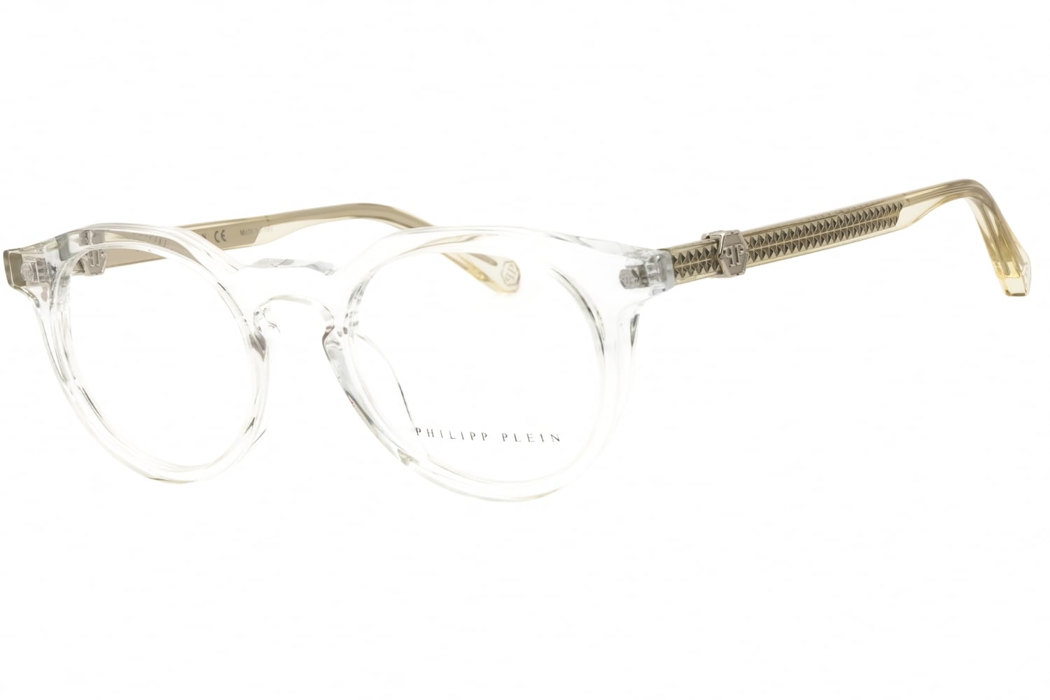 Philipp Plein VPP060M in Shiny Transparent Grey. This model features an eye catching shape to complement your facial features.The frame is made from quality materials, balancing weight and strength for your ultimate comfort.